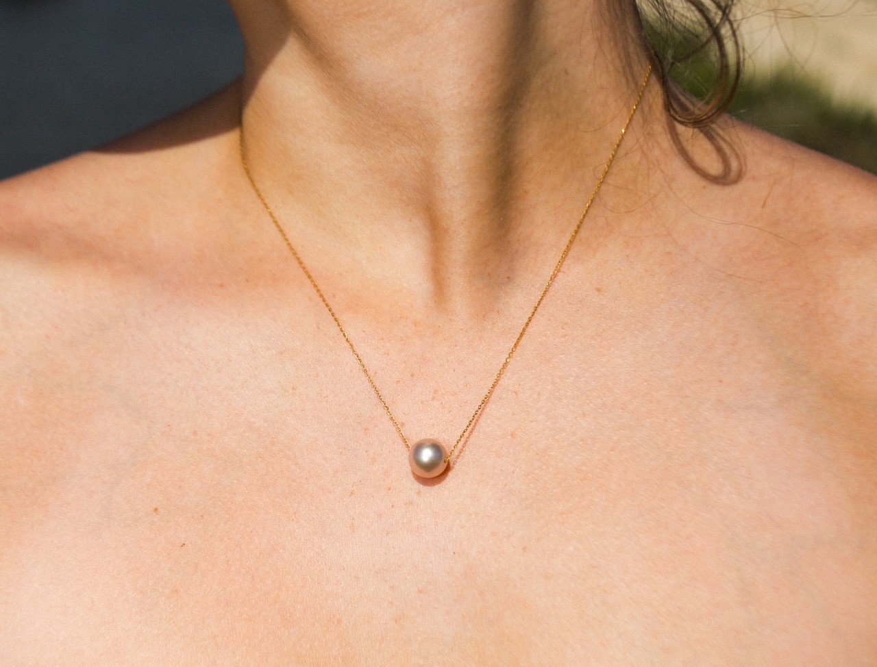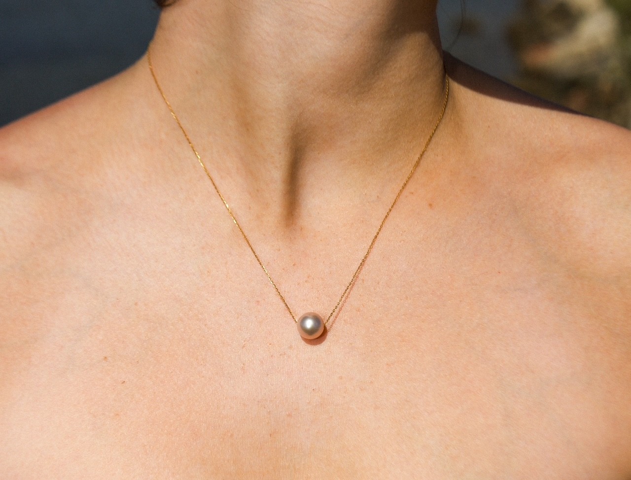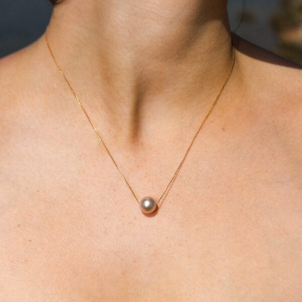 This elegant 18k yellow gold chain features a stunning lavender pearl pendant, beautifully highlighting the pearl’s iridescent hues. The soft lavender shade of the pearl contrasts beautifully with the warm glow of the yellow gold, creating a refined and timeless piece perfect for any occasion.