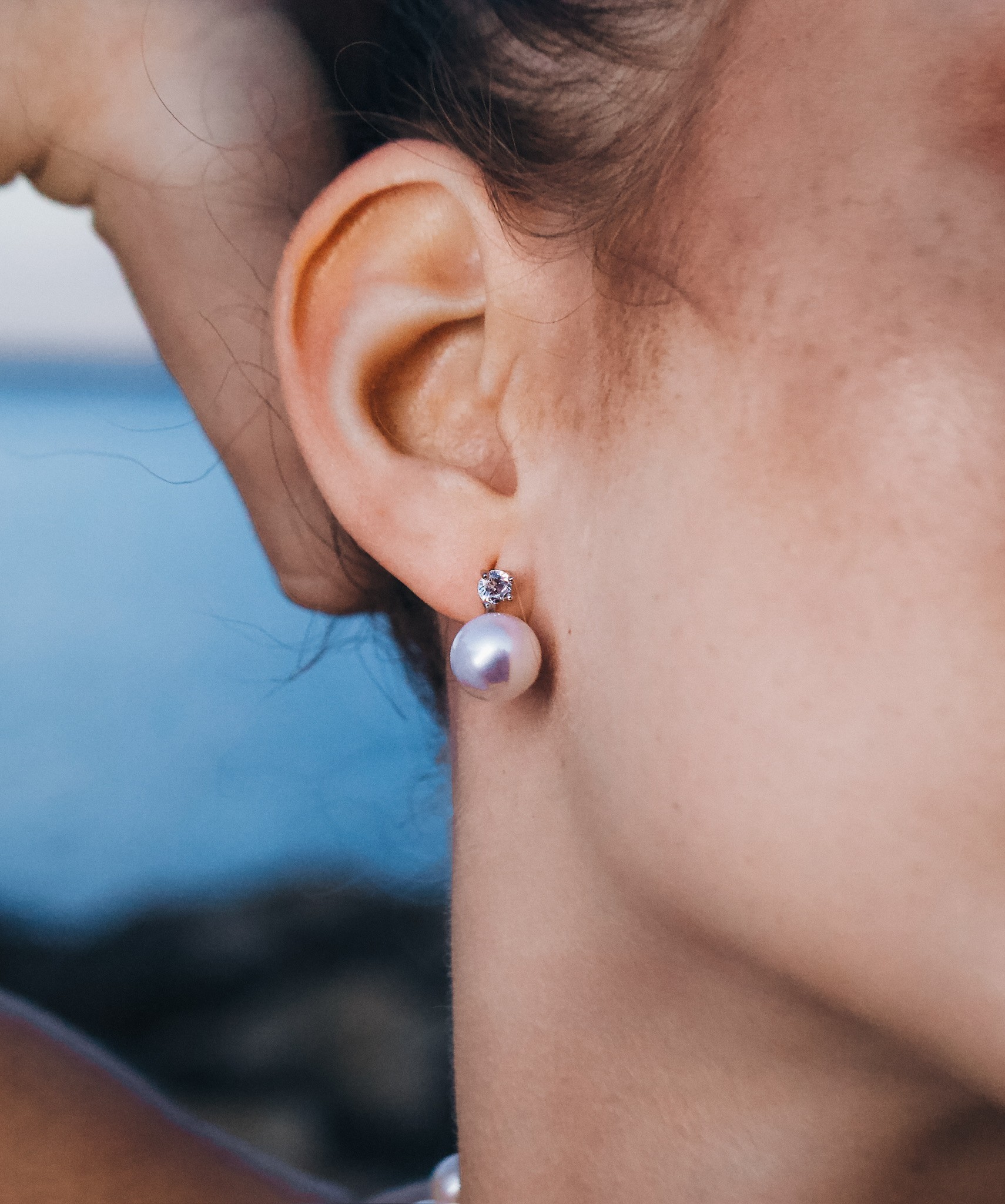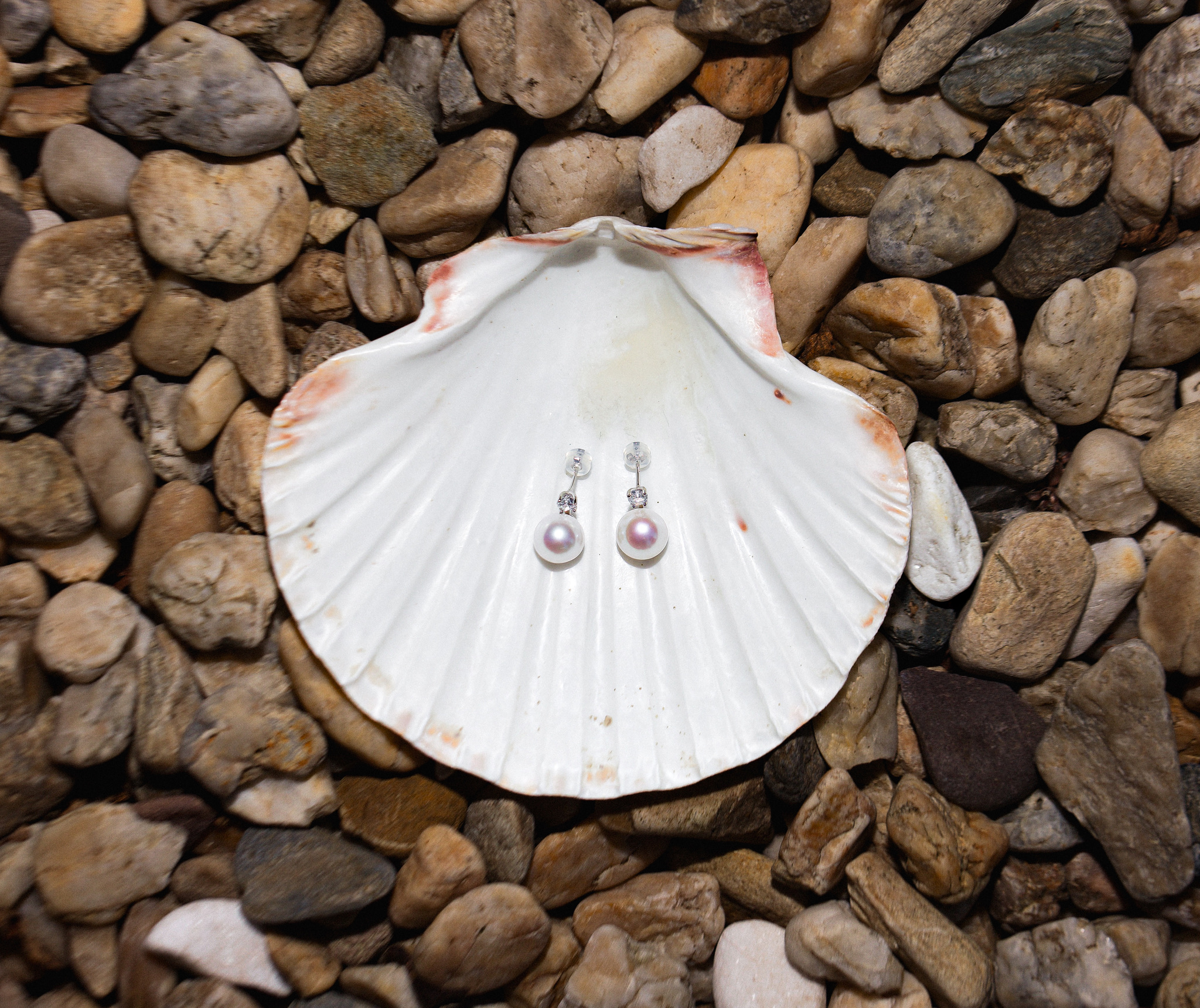 10-11mm White Freshwater Pearl and Zircon Earrings