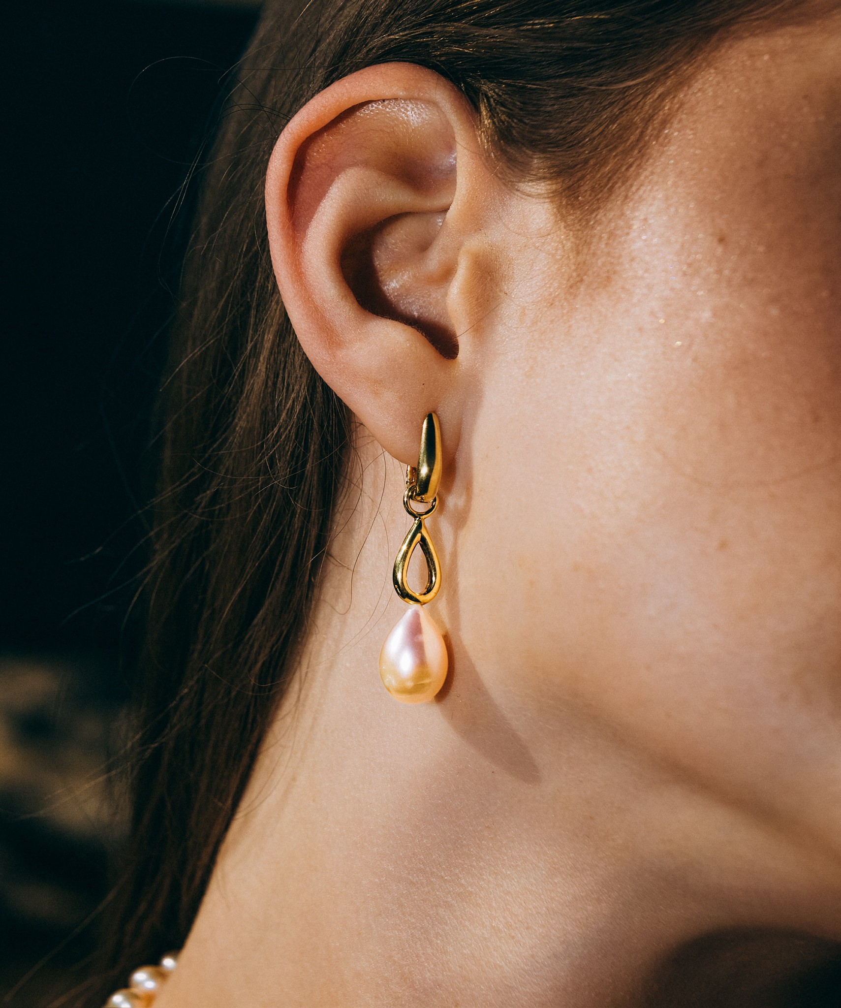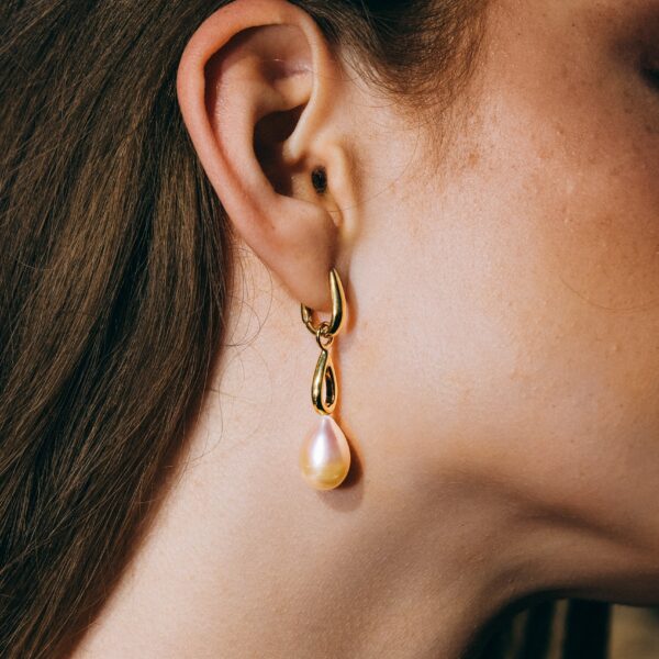The long gentle curve of the teardrop pearls adds movement and depth, while the soft blush tones complement all skin tones and a wide range of wardrobes. Whether you’re pairing them with a bridal gown, work attire, or weekend wear, these earrings add a touch of timeless charm and understated luxury.
