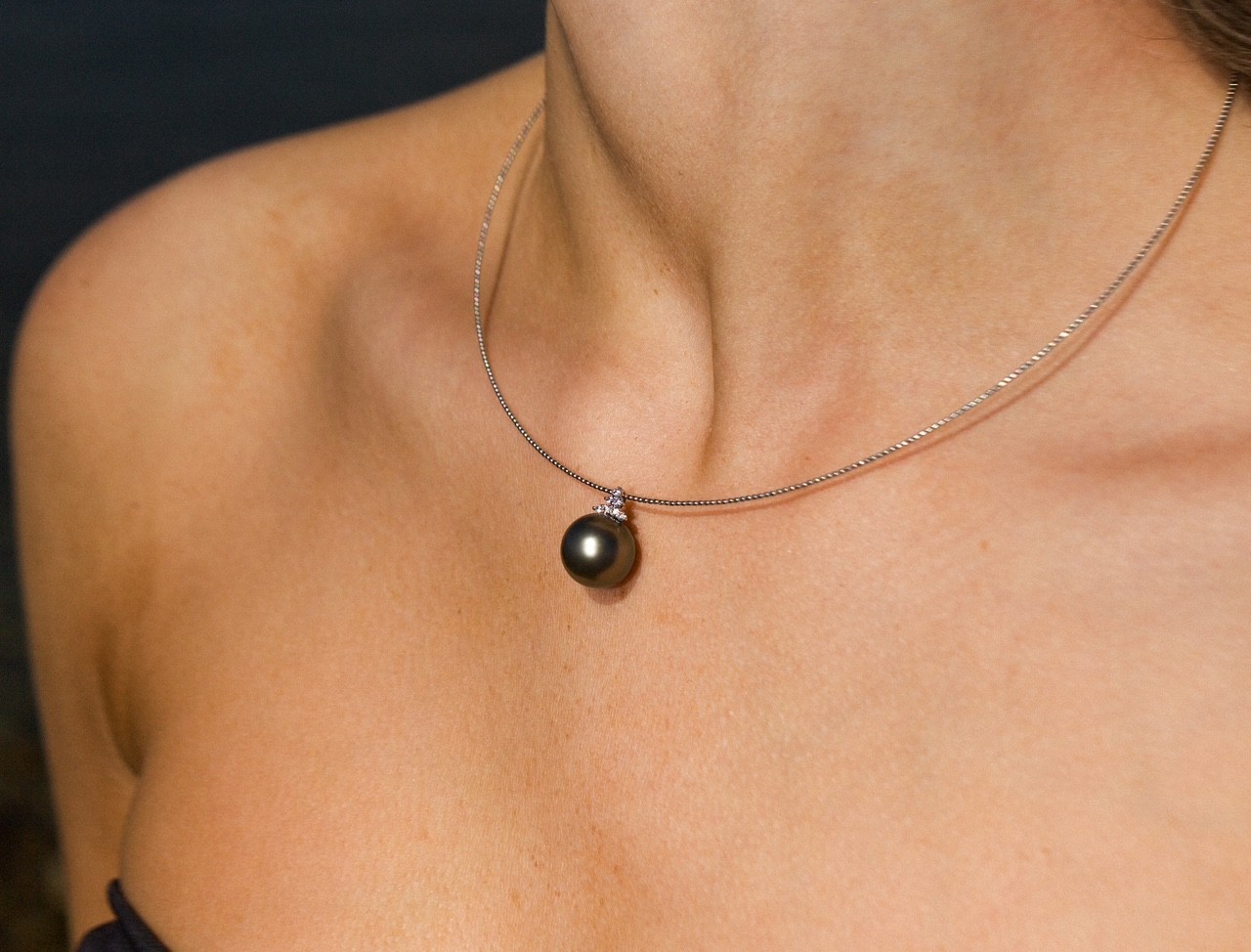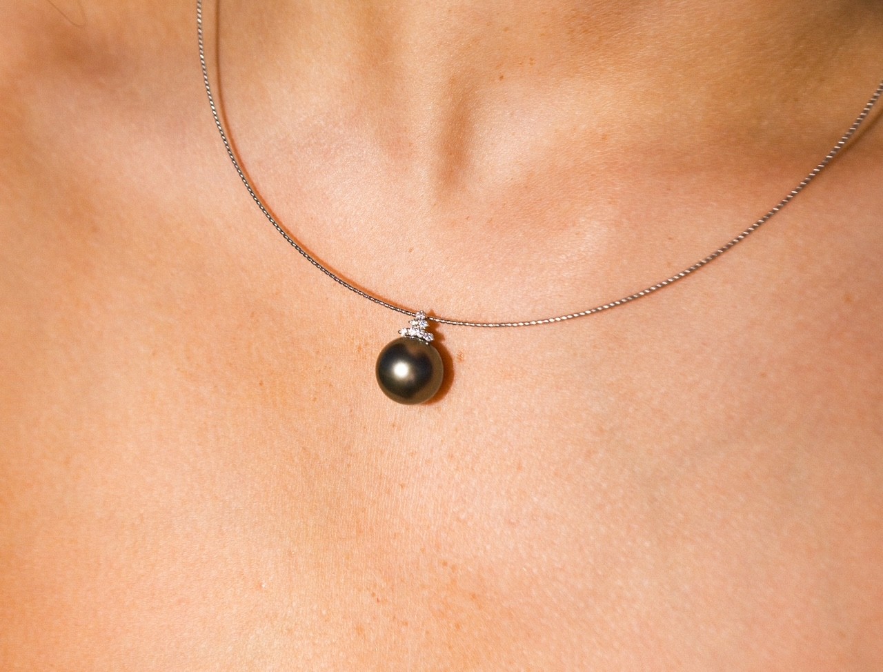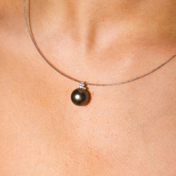 Whether paired with a classic dress or a modern ensemble, this Tahitian pearl and zircon pendant necklace is a showpiece of sophistication, ideal for those who appreciate timeless beauty with a contemporary twist.