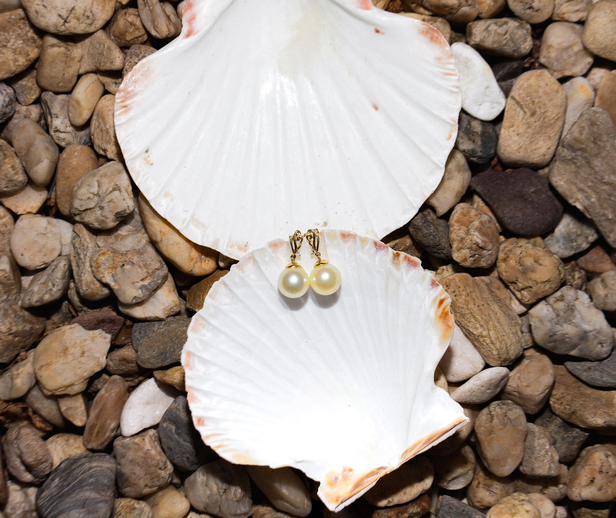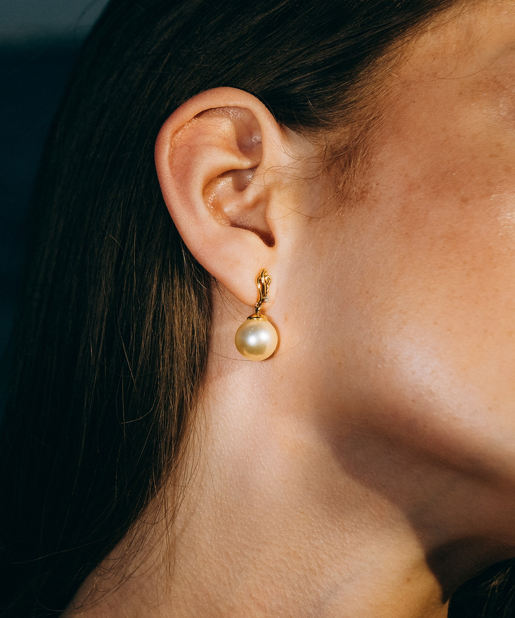Each luminous pearl gracefully suspends from a polished 18K yellow gold setting, providing a warm and luxurious contrast that enhances the pearl’s natural beauty. Above each pearl sits a brilliant-cut white zircon, adding a touch of sparkle and refinement. The zircon stones are carefully selected for their clarity and brilliance, offering a diamond-like shimmer without overshadowing the centrepiece—the magnificent South Sea pearl.