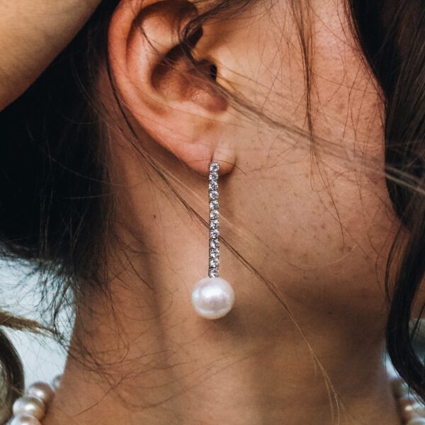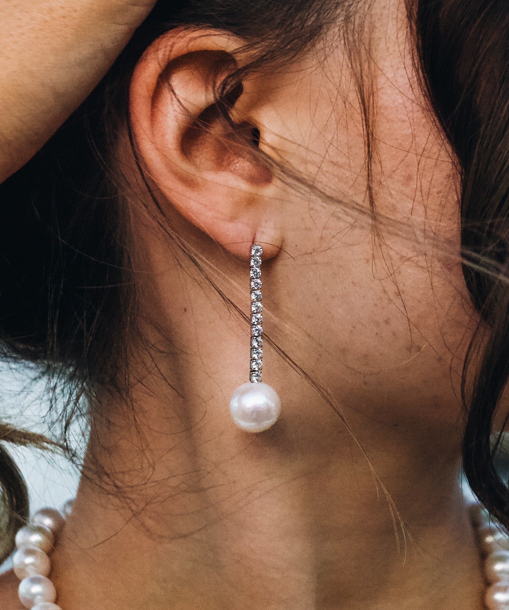 Above each pearl, a row of brilliant-cut zircon stones adds just the right amount of sparkle, emulating the brilliance of fine diamonds without overshadowing the soft glow of the pearl. These high-quality zirconia accents are set in a finely polished 925 sterling silver base, ensuring durability and long-lasting shine.