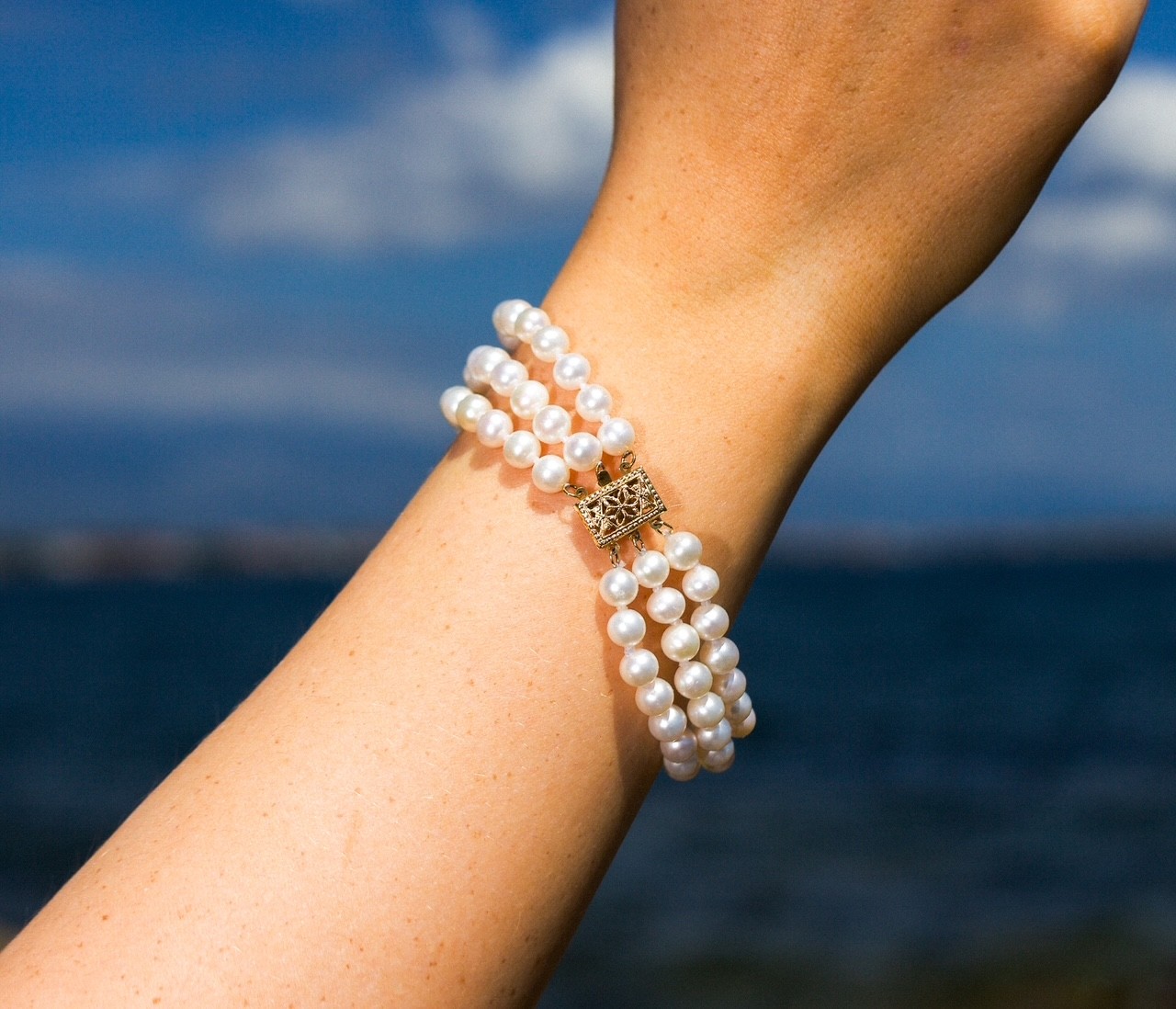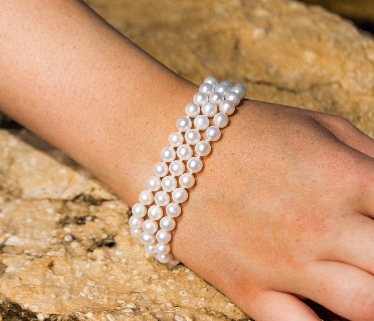 6mm AA+ Triple- Strand White Freshwater Pearl Bracelet