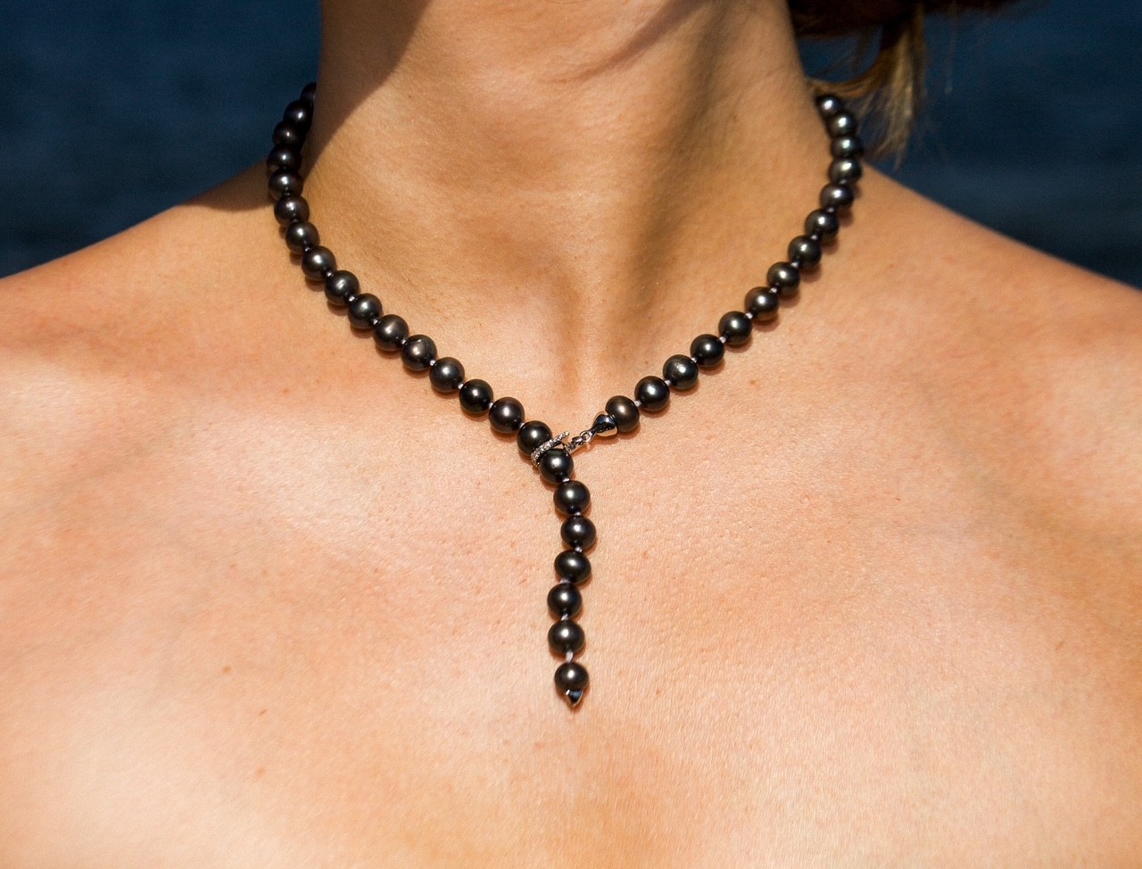 The necklace is secured with a luxurious 14k gold “click” clasp, designed for both ease and elegance. The clasp is accented with sparkling diamonds, adding a subtle yet striking touch of brilliance to the overall design. Functional and decorative, the clasp serves as a sophisticated focal point and allows the necklace to be worn with the closure either at the back or as a feature in front.