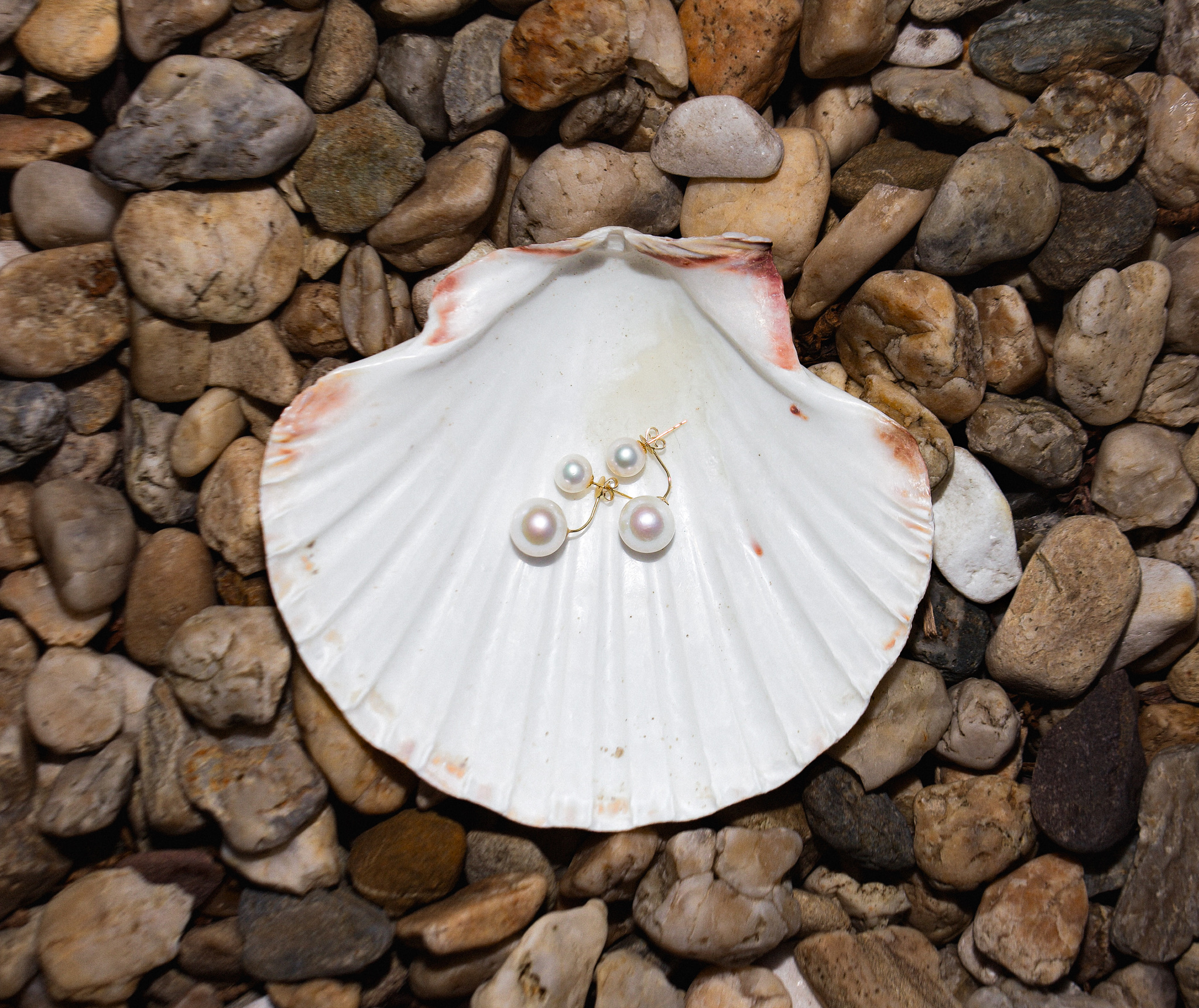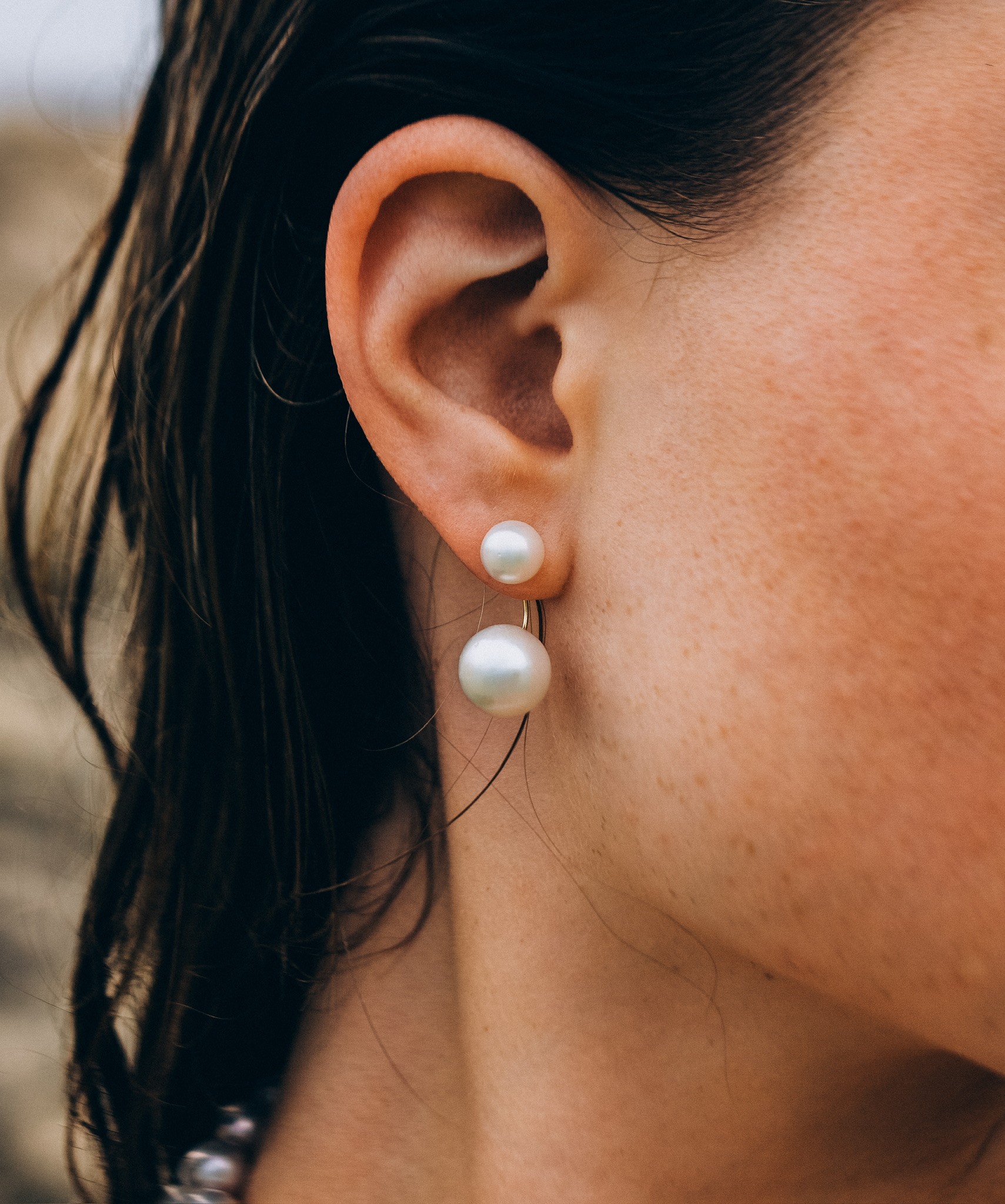 These stylish double pearl earrings feature a modern pairing of 7mm and 10mm freshwater pearls, offering a chic layered look with timeless elegance.