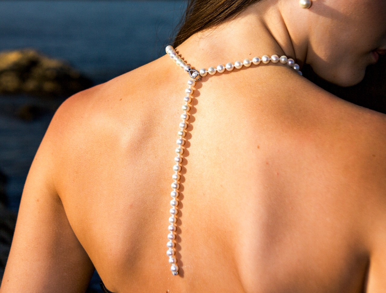 Designed to drape elegantly at the front or down the back, this necklace offers a dramatic and sensual silhouette — perfect for backless or low-back gowns. The adjustable length allows for versatile styling, whether worn short for a classic look or extended for maximum impact. Every component of this exquisite piece is crafted in Italy, reflecting exceptional attention to detail, artistry, and quality.