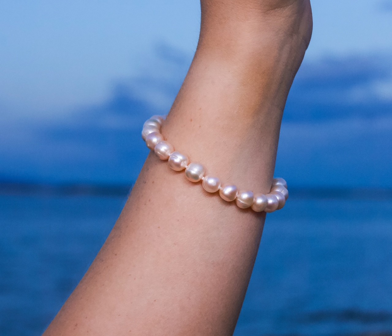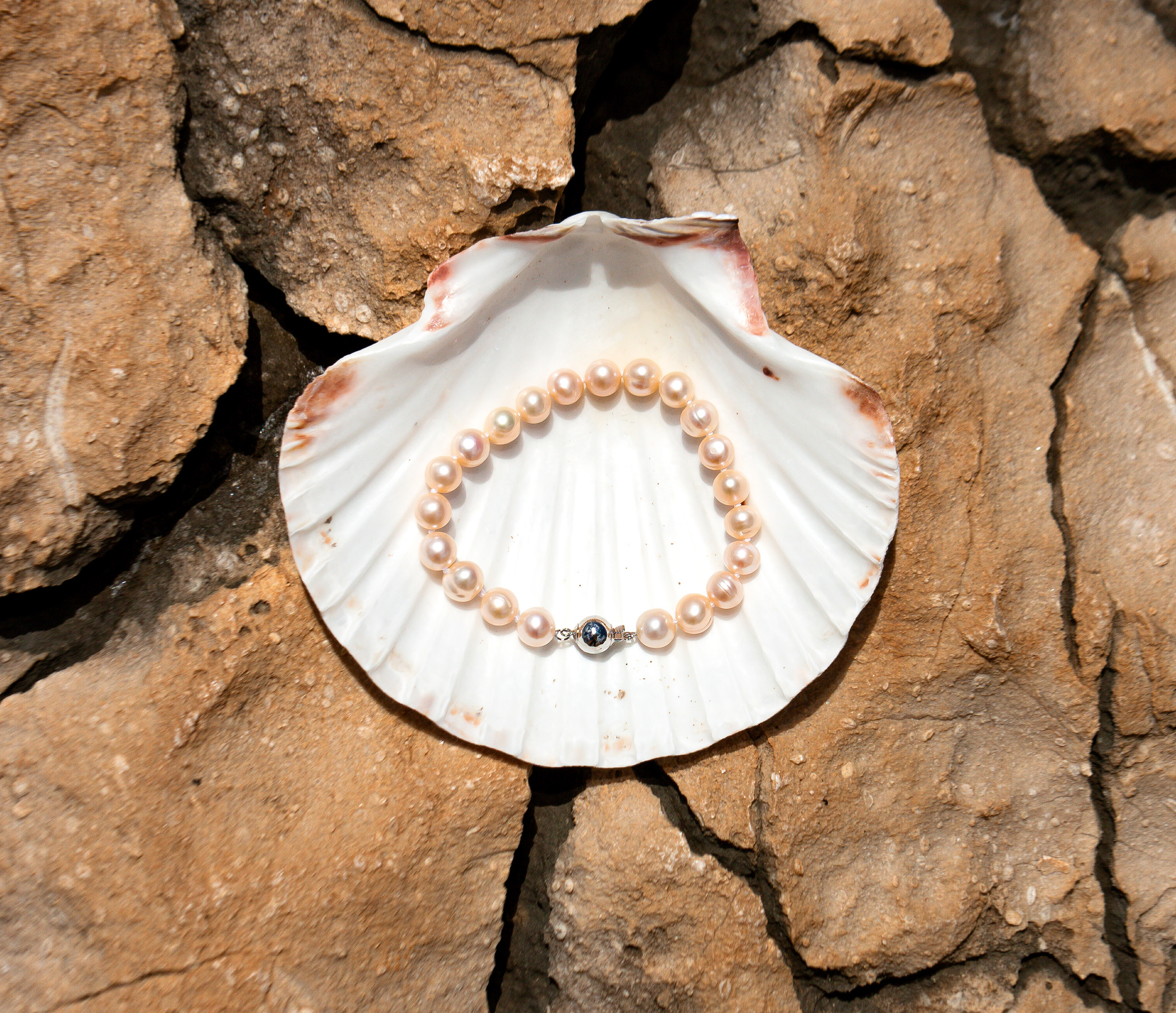 8mm A Pink to Peach Freshwater Pearl Bracelet