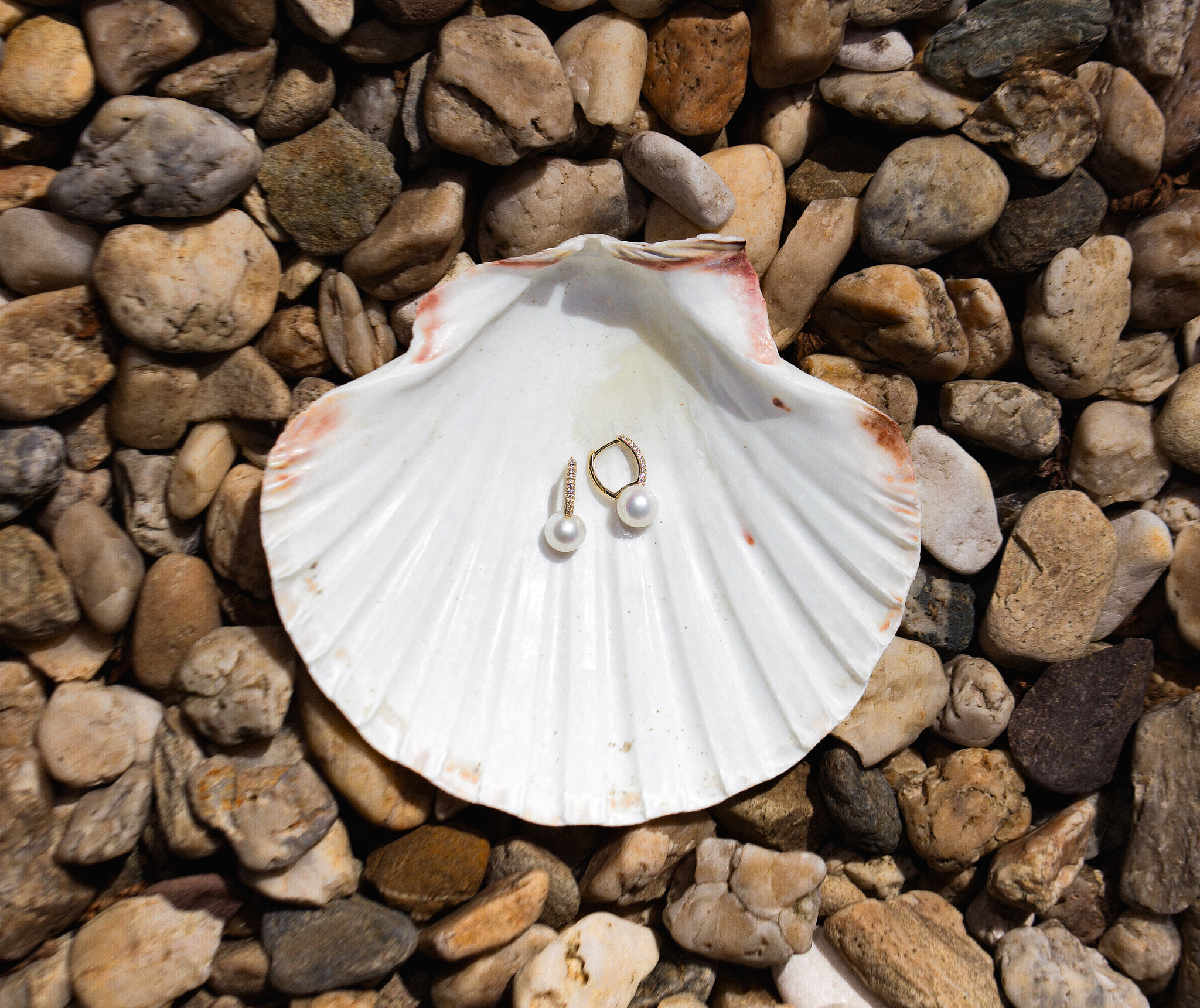 Featuring lustrous 8mm white freshwater pearls nestled in graceful 14K gold loops, these earrings are accented with sparkling zircons for added brilliance. A perfect blend of timeless elegance and modern charm.