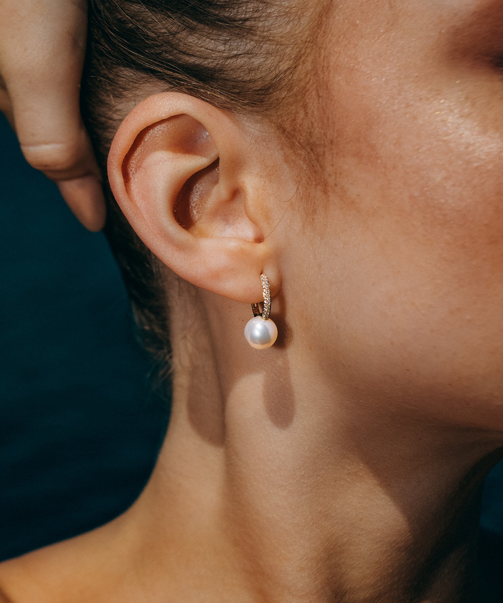 Encircling each pearl, the loop is lined with brilliant white zircon stones, expertly set to maximize sparkle and add a touch of contemporary glamour. These shimmering accents catch the light beautifully, enhancing the natural glow of the pearls and adding dimension to the design.
