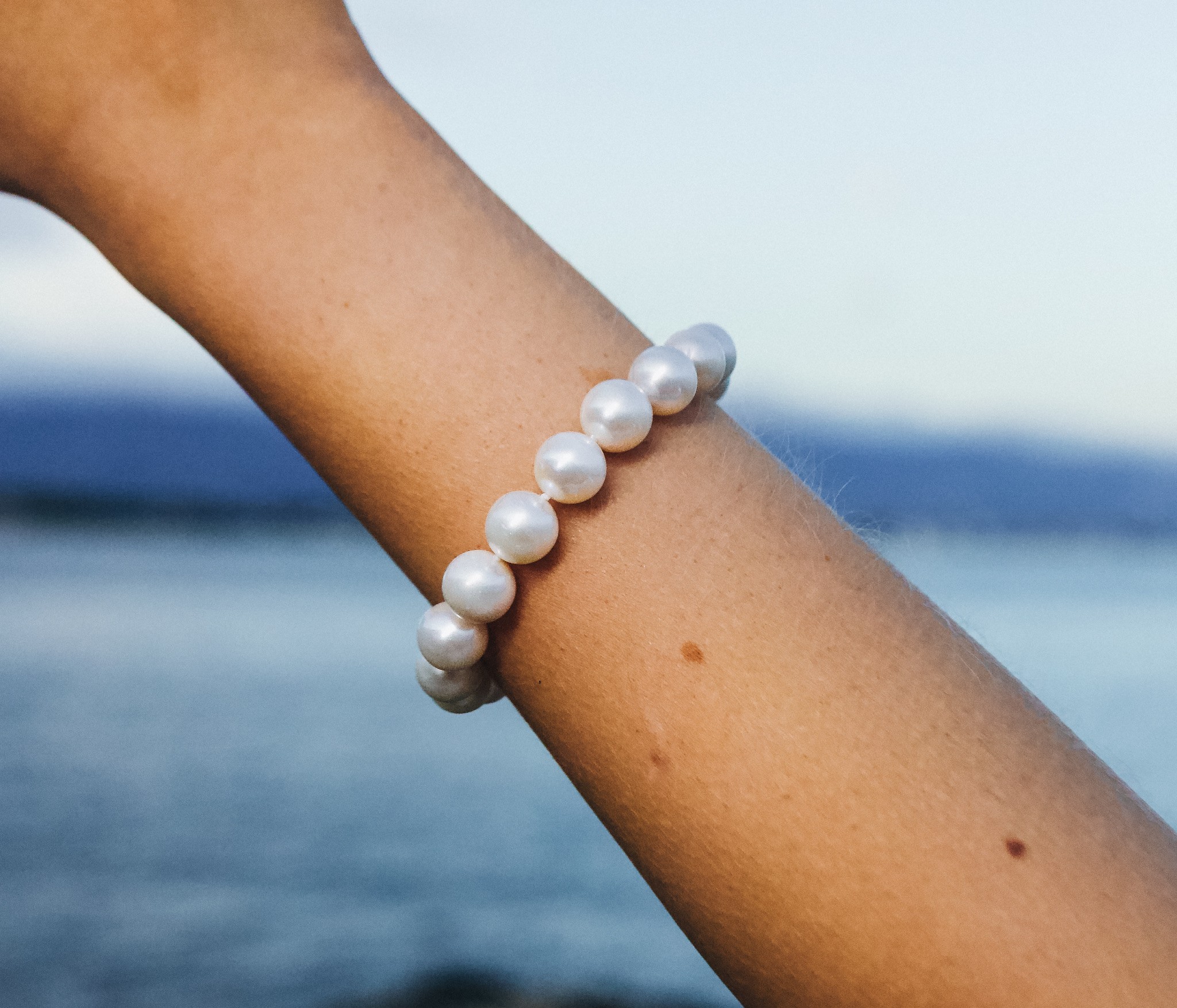 Each bracelet is hand-strung with premium freshwater pearls measuring 9–10mm in diameter — a size that offers a luxurious presence on the wrist while maintaining a refined and delicate feel. The pearls are carefully selected for their radiant luster, smooth surface, and natural white hue, making them a perfect match for bridal wear in any tone — from ivory and cream to crisp white.