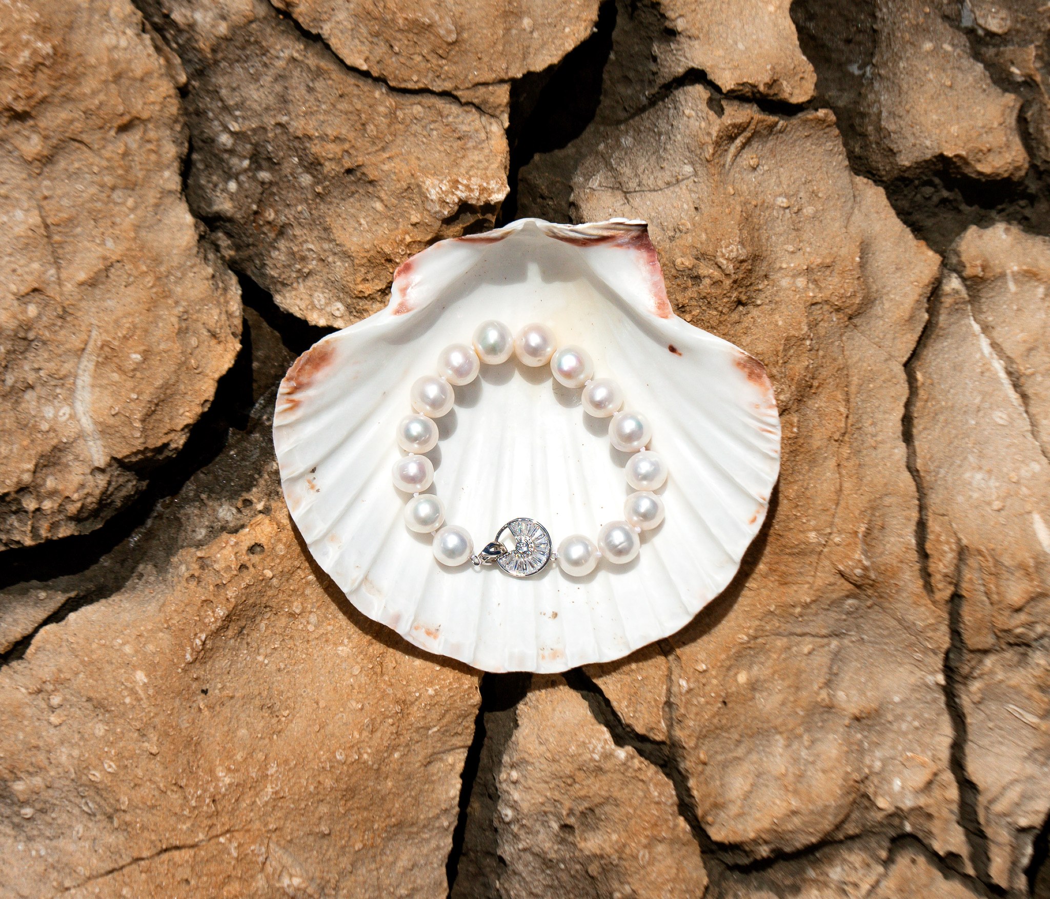 This 9-10mm white freshwater pearl bracelet exudes timeless elegance, featuring lustrous pearls and a stunning silver clasp embellished with sparkling zirconia. From our exclusive wedding collection, it’s the perfect blend of classic beauty and modern sophistication, making it a stunning choice for any bride.