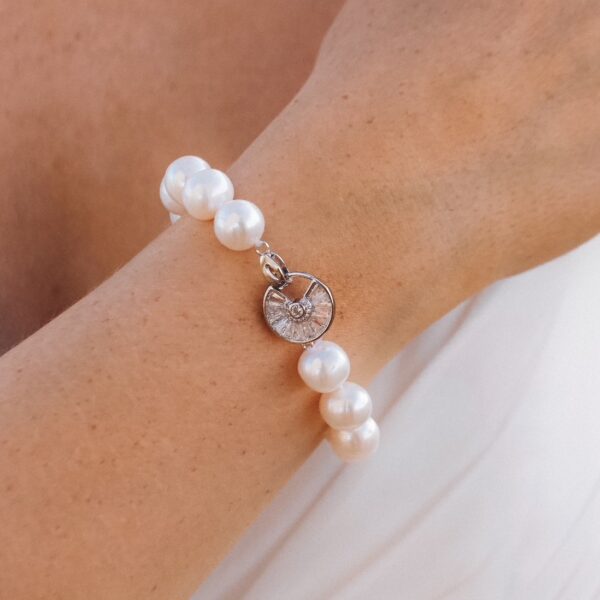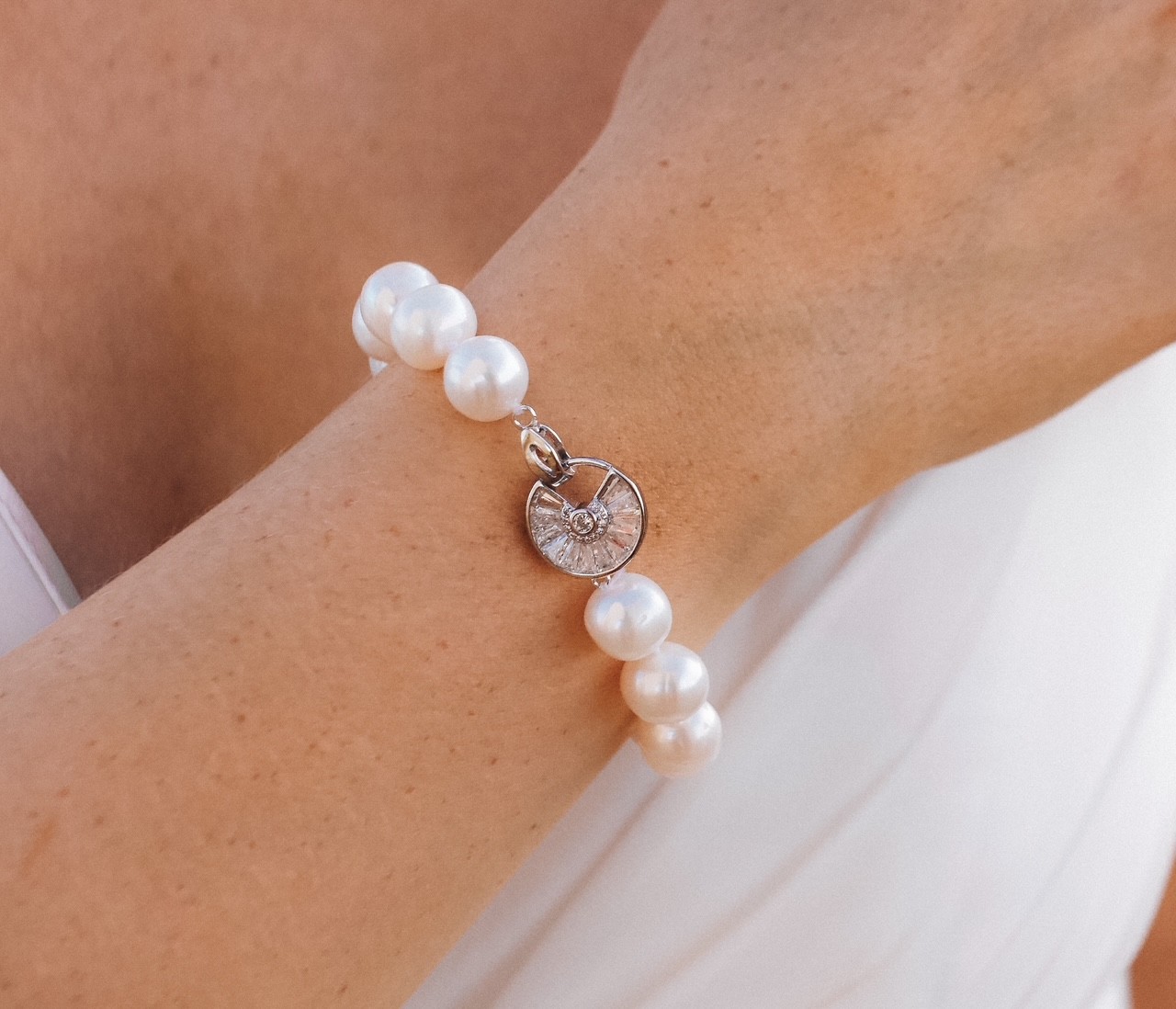 Designed to be a statement piece for brides, this bracelet effortlessly combines classic beauty with modern sophistication. It’s the perfect accessory to add a refined, glamorous touch to your wedding day look while remaining versatile enough to be worn on other special occasions. Whether worn on its own or paired with other fine jewellery, this pearl bracelet is a lasting symbol of purity, love, and timeless beauty, making it an unforgettable piece that will be cherished for years to come.
