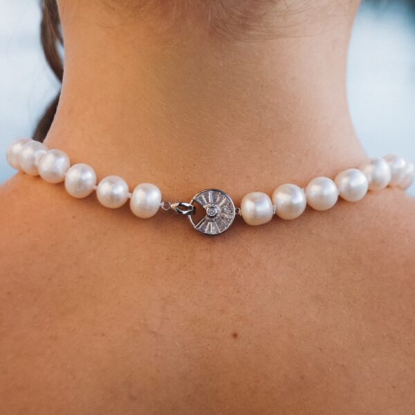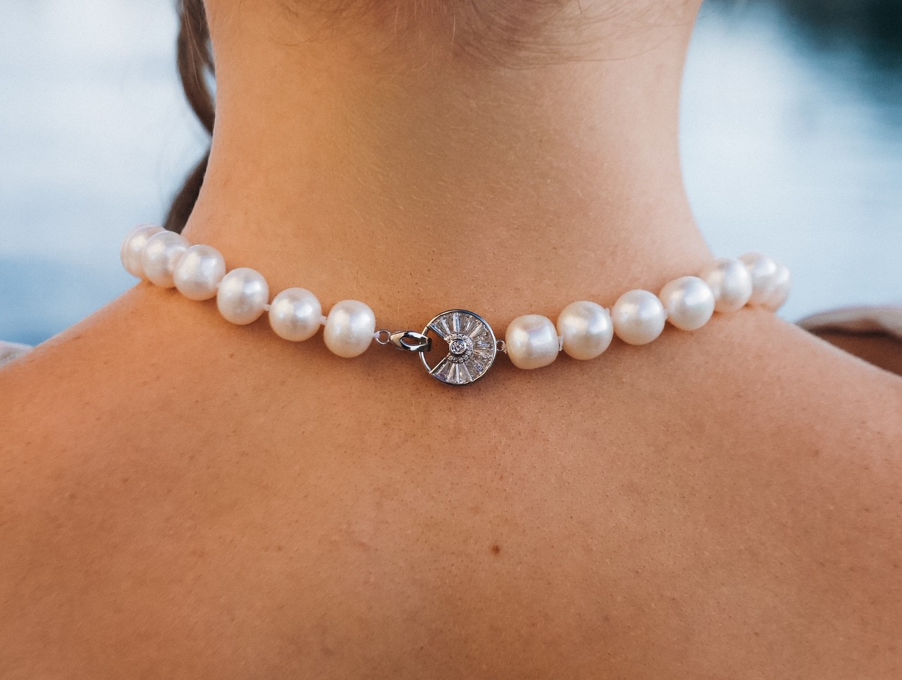 Perfect for brides, bridesmaids, or as a meaningful gift, this white freshwater pearl necklace with silver and zircon clasp embodies the romantic charm and timeless sophistication that every wedding moment deserves. A lasting keepsake, it’s a piece to be worn, treasured, and passed down for generations.