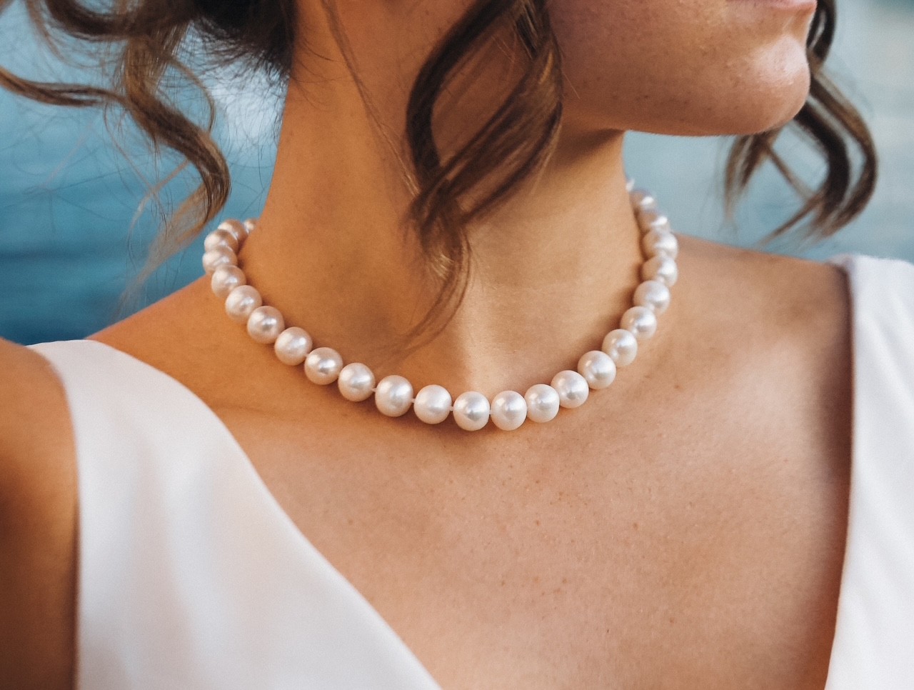 Celebrate timeless elegance with this exquisite 9–10mm white freshwater pearl necklace, a standout piece from our wedding collection designed to add grace and sophistication to your most special moments. Each pearl is carefully selected for its high luster, near-round shape, and smooth surface, creating a strand that radiates classic beauty and understated luxury.