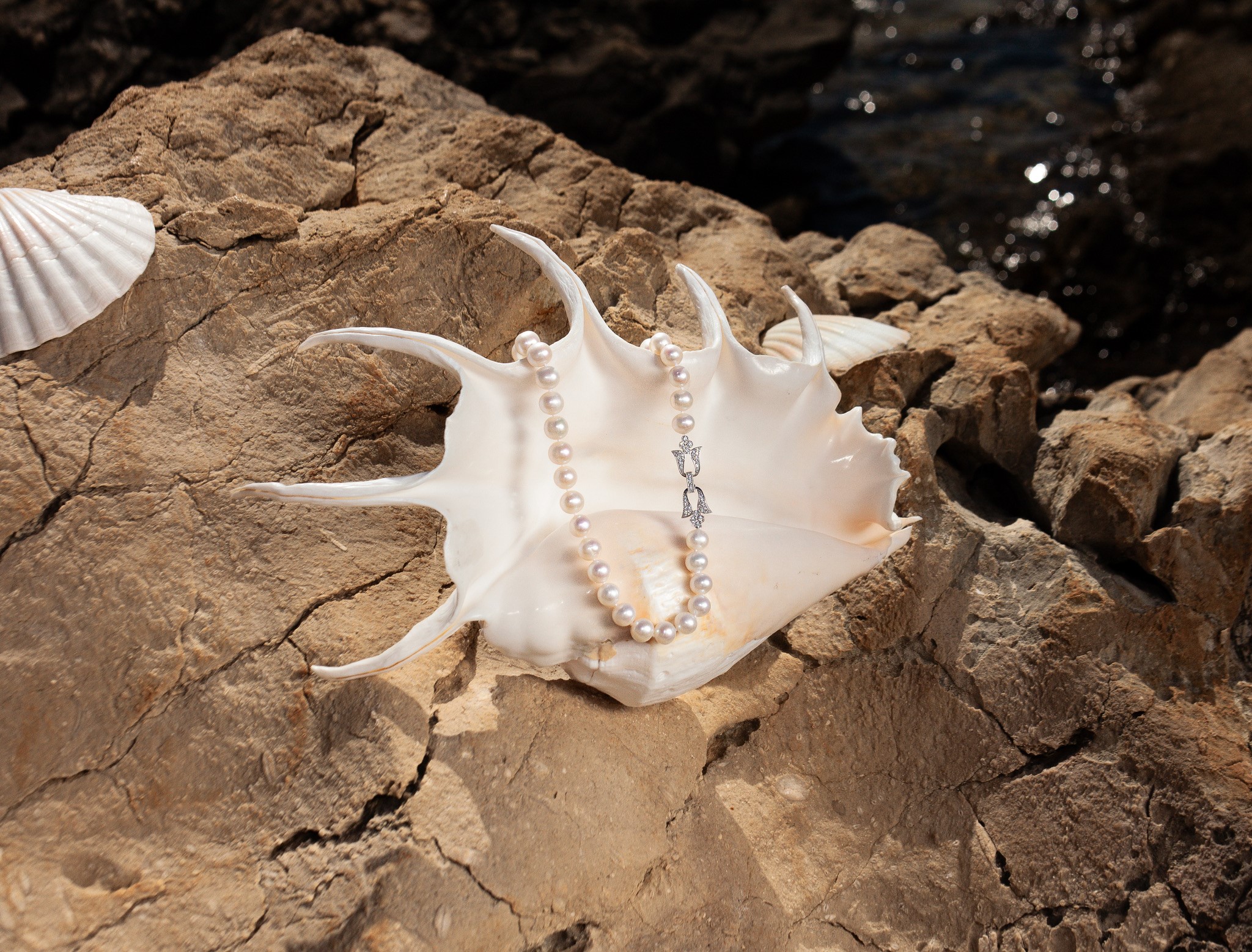 7mm AA+ White Freshwater Pearl & Diamonds Necklace