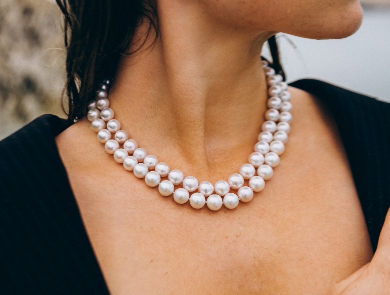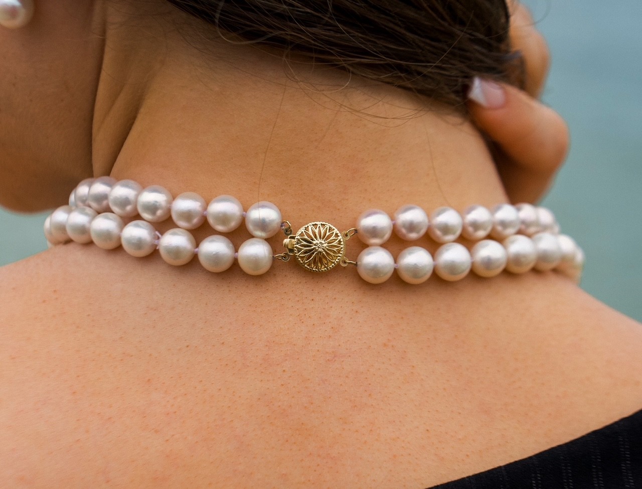 A double strand 9–10mm pearl necklace features two rows of generously sized, lustrous natural colour freshwater pearls, offering a bold and elegant look. Perfect for making a timeless, sophisticated statement.