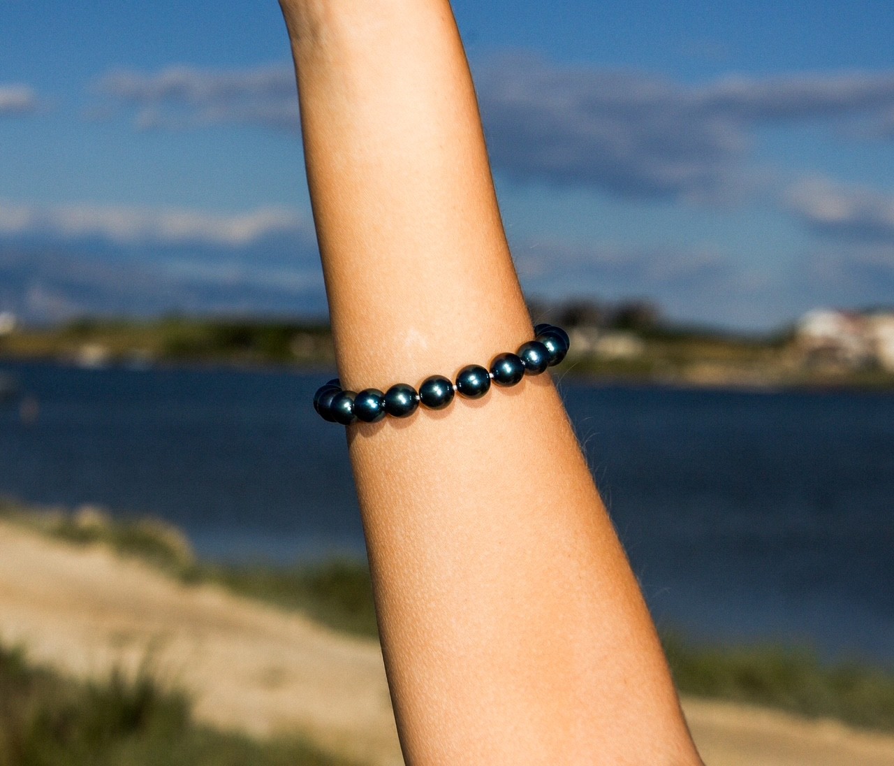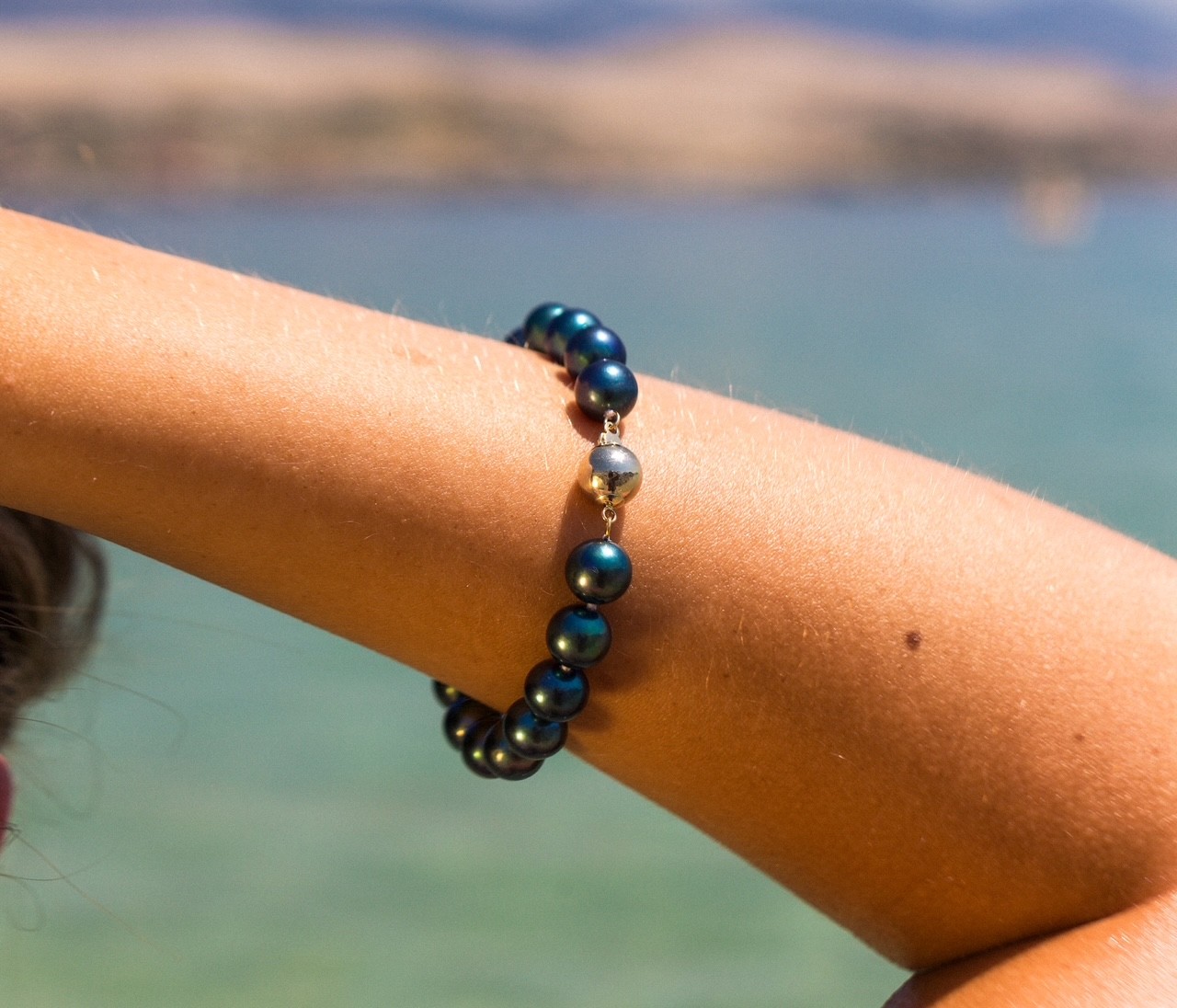 Each pearl is meticulously hand-selected for its round shape, smooth surface, and vibrant luster. The 9–10mm size gives the bracelet a substantial and luxurious feel, while the rich green-blue hues reflect light beautifully, creating an iridescent play of colour that changes with every movement.