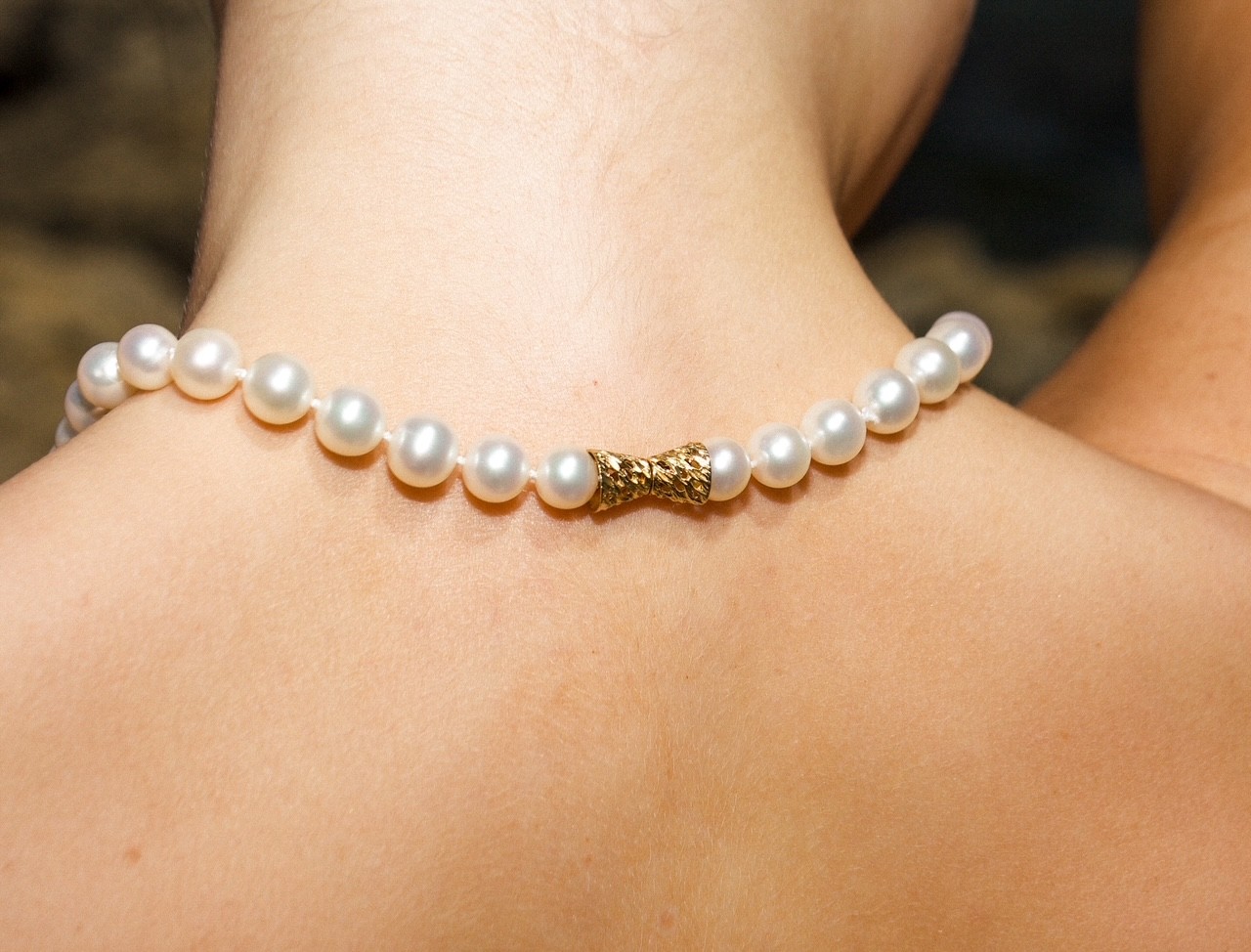 A pearl necklace with a tying bar gold clasp combines timeless elegance with a modern twist. Featuring lustrous pearls and a sleek gold bar clasp, it offers secure closure and a stylish, contemporary finish.