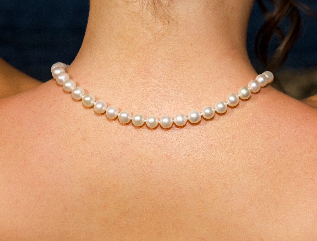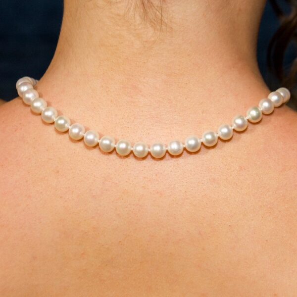 7mm AA+ White Freshwater Pearl & Diamonds Necklace